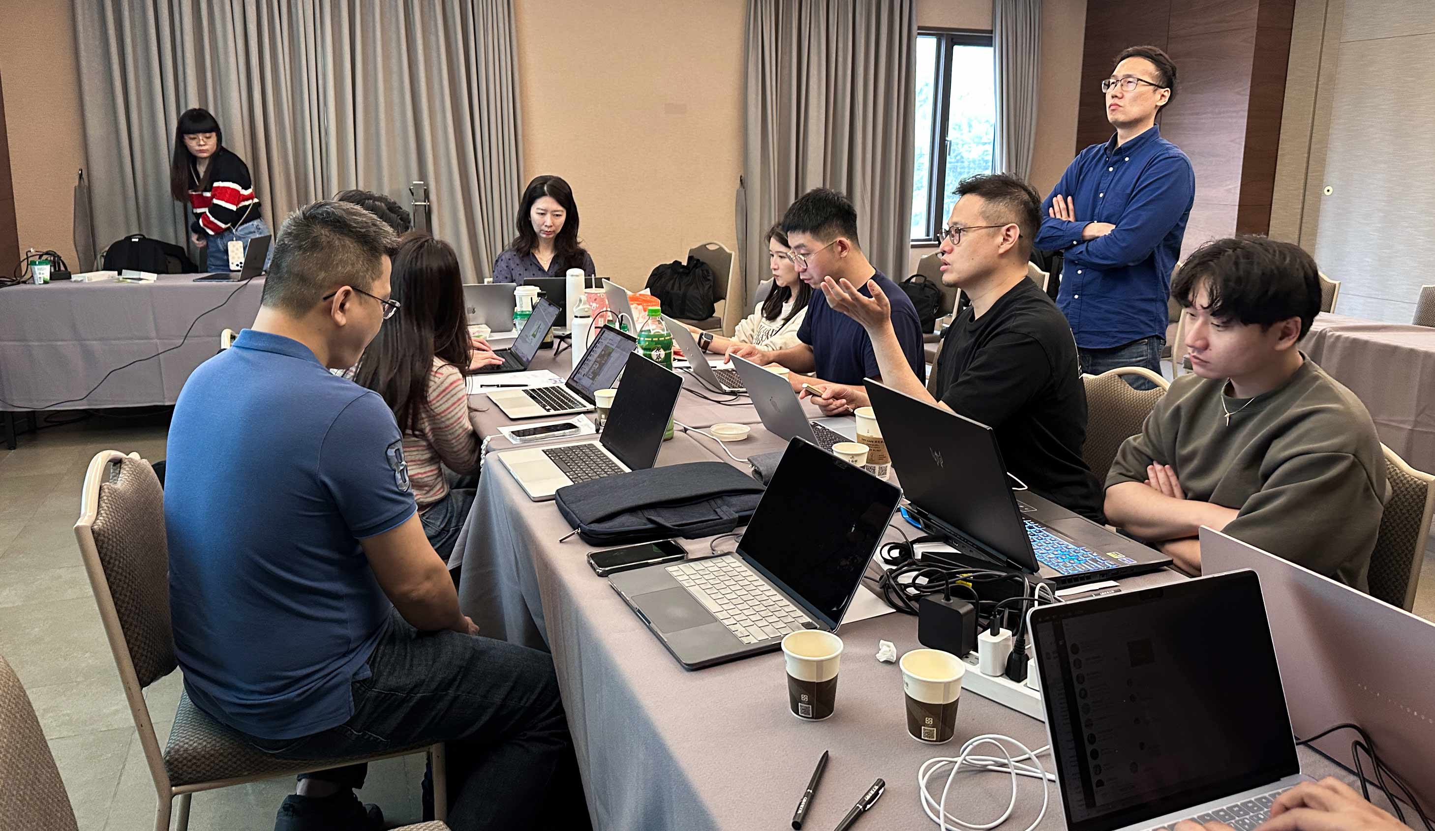 Day 1 以「夢想擘劃」為主軸,夥伴們在 Freya 致詞後進入分組討論流程,主題聚焦於「AI 時代下的新商業模式」。從議題探索、簡報規劃到提案演練,分組中不僅產出具體想法,更凝聚跨部門協作的默契。