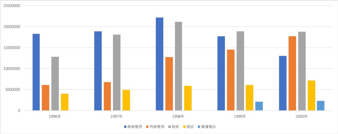 在討論這個議題之前,讓我們來先看看1996-2000年網路尚未普及的時代,品牌在媒體的投資量: